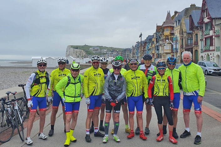 7 valeureux compagnons cyclistes de l’ACPA vont à la découverte de la côte d’Albâtre. 102 Km, 852 m D+